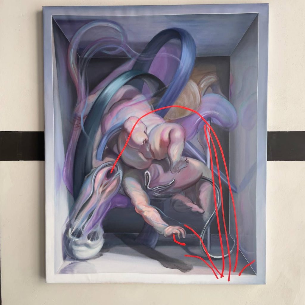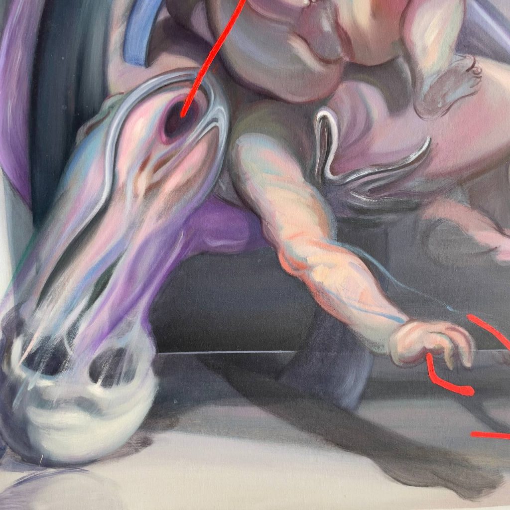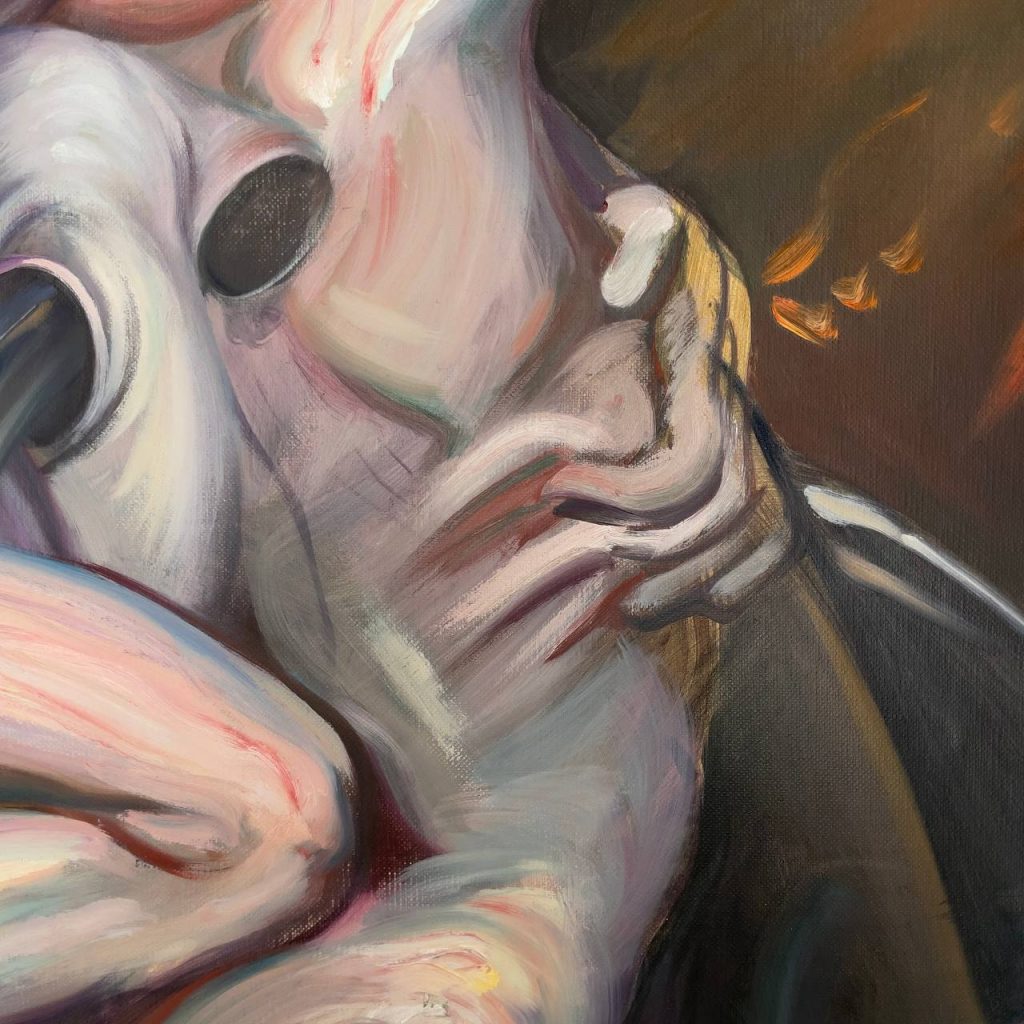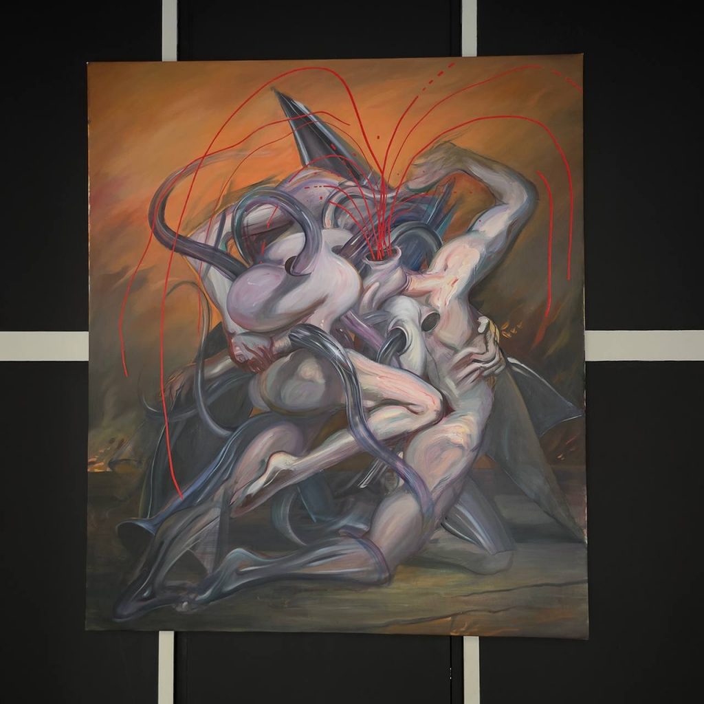 Attraverso l’uso della pittura ad olio, crea una danza di figure contrastanti tra corpo e materia, in cui il titolo “Leghe” diviene una potente metafora che sfida le convenzioni insite alla parola stessa e pone interrogativi sulla rappresentazione del corpo stimolando profonde riflessioni tra fisicità e tecnica, simbolo e identità; esplora il delicato equilibrio tra vulnerabilità e resilienza, immortalando in materiali e trasversalità pittorica la bellezza intrinseca delle forme fuse.